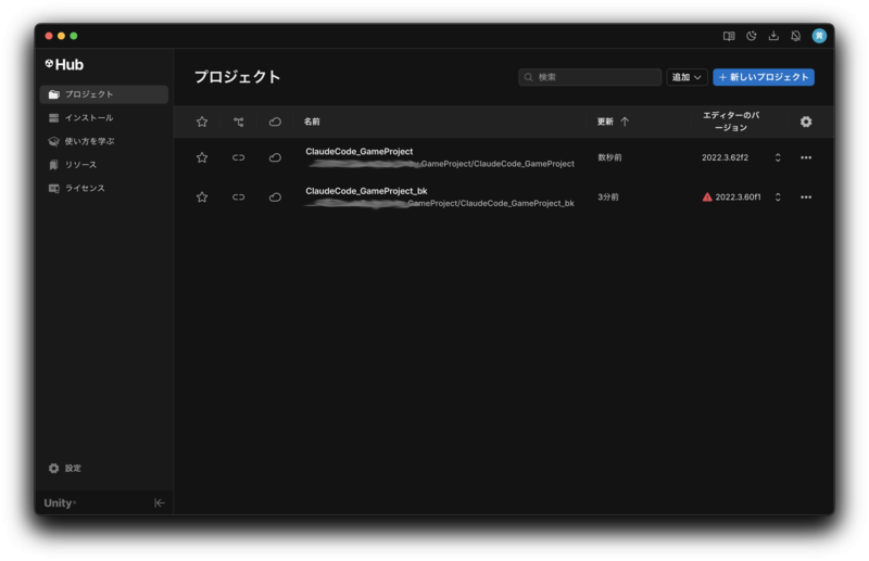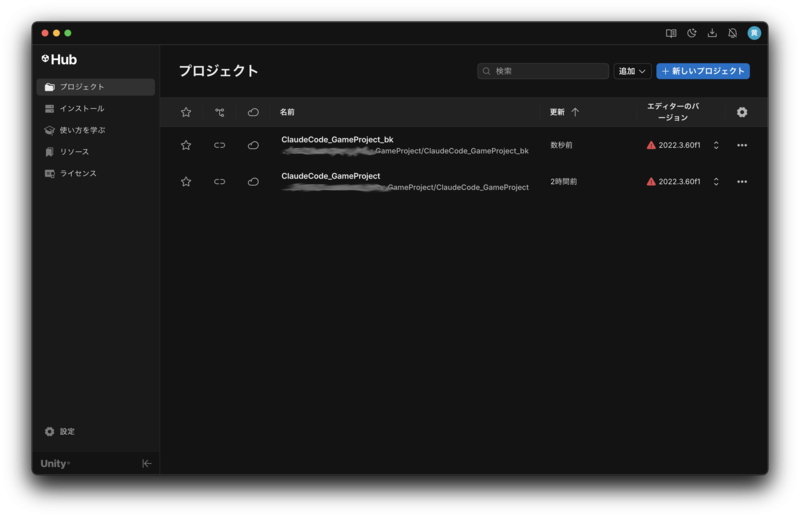 ここまで確認できたら、バックアップ用に複製したプロジェクトは消して大丈夫です。